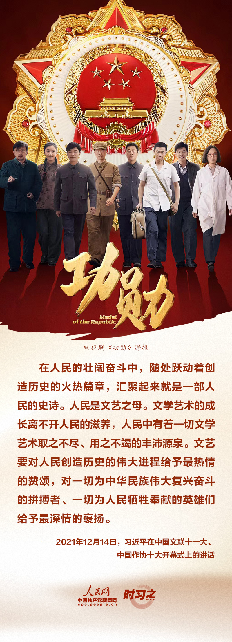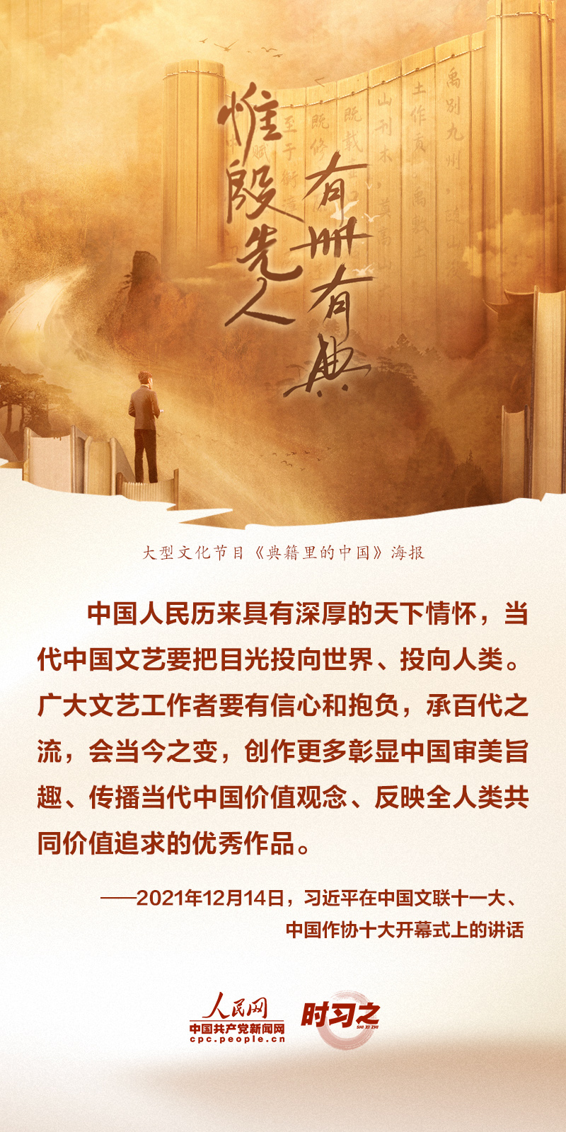 12月14日,中国文学艺术界联合会第十一次全国代表大会、中国作家协会第十次全国代表大会在北京人民大会堂开幕。习近平出席大会并发表重要讲话,强调广大文艺工作者要“展示中国文艺新气象,铸就中华文化新辉煌,为实现第二个百年奋斗目标、实现中华民族伟大复兴的中国梦提供强大的价值引导力、文化凝聚力、精神推动力”。
