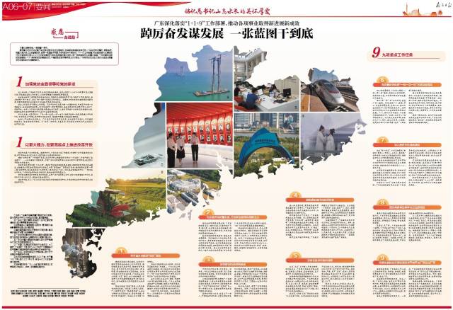 肩负着习近平总书记赋予的在新征程中走在全国前列、创造新的辉煌的使命任务,广东始终牢记嘱托、感恩奋进,把握大局大势,立足省情实际,坚持一张蓝图干到底,科学谋划并不断深化“1+1+9”工作部署,形成推进现代化建设的行动方案和施工图,以久久为功的战略定力和攻坚克难的强大韧劲,用一项项紧扣中心的重大举措、一件件推陈出新的实招硬招、一个个影响深远的亮眼成效,不懈探索体现中国特色、时代特征、广东特点的社会主义现代化路径,朝着总书记指引的方向勇毅前行。