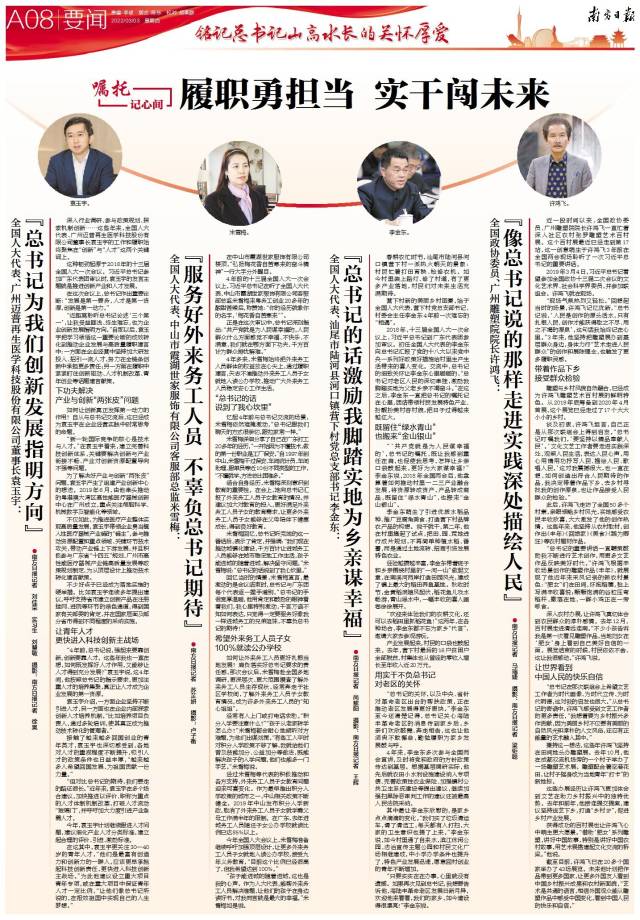 今天,承载着亿万南粤儿女的期待与重托,在粤全国人大代表、住粤全国政协委员启程前往首都北京,在议决国是的神圣殿堂,共谋发展大计、共话美好未来。回望习近平总书记近年来,特别是一年来带领广东砥砺前行的奋斗历程,更能深味人民领袖对这片改革热土山高水长的关怀厚爱。南方日报今日推出“铭记总书记山高水长的关怀厚爱”特别报道,敬请垂注。