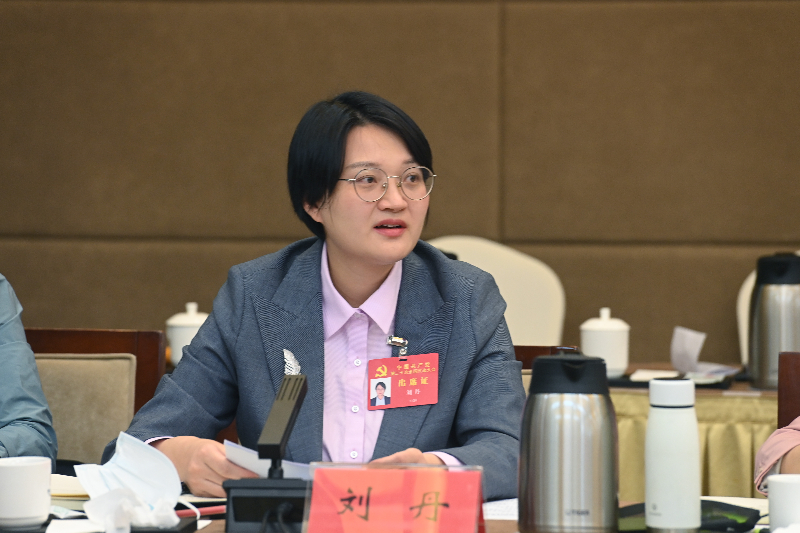 21日,广东团刘丹代表继续认真讨论党的二十大报告。 南方日报特派记者 王辉 肖雄 摄