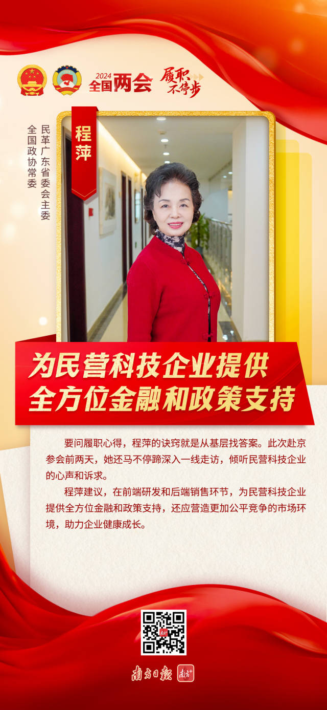今年全国两会,程萍在提案中建议,在前端研发和后端销售环节,为民营科技企业提供全方位金融和政策支持,还应营造更加公平竞争的市场环境,助力企业健康成长。