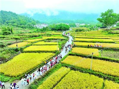 封开县杏花镇凤楼村的千层梯田一片金黄。记者 朱梦丹 摄