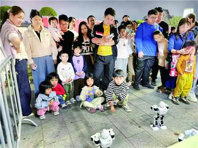 活动现场,机器人与市民游客互动。